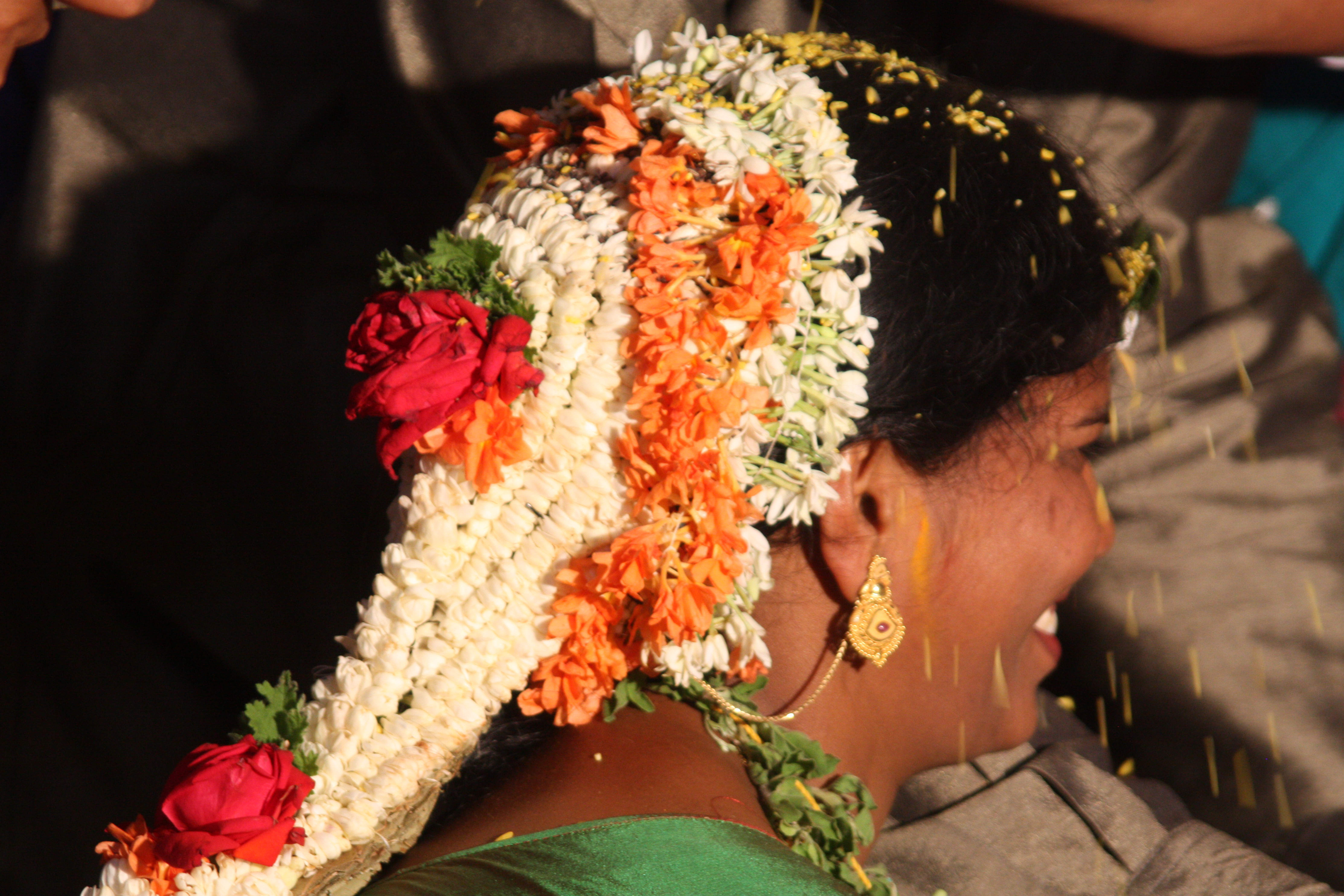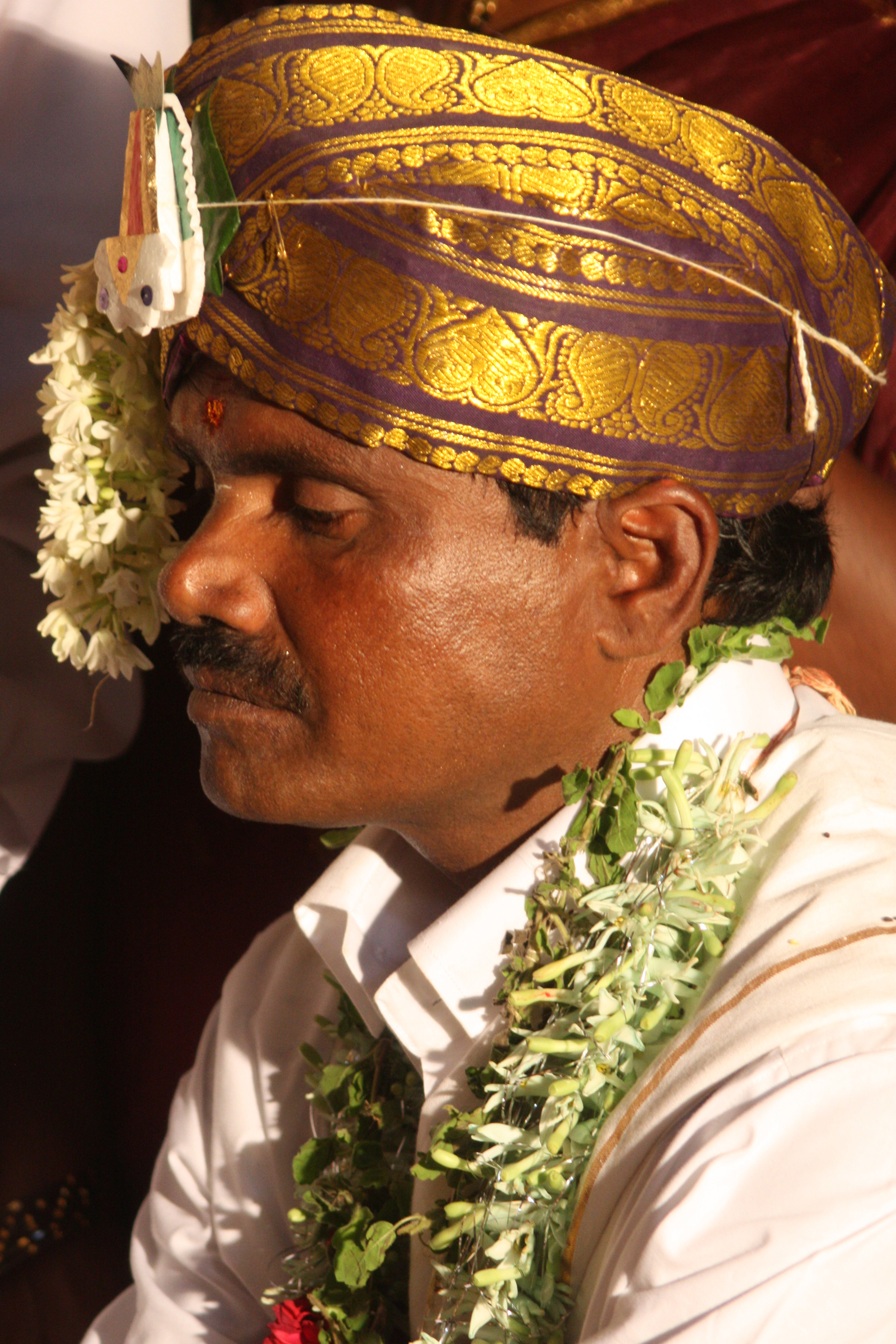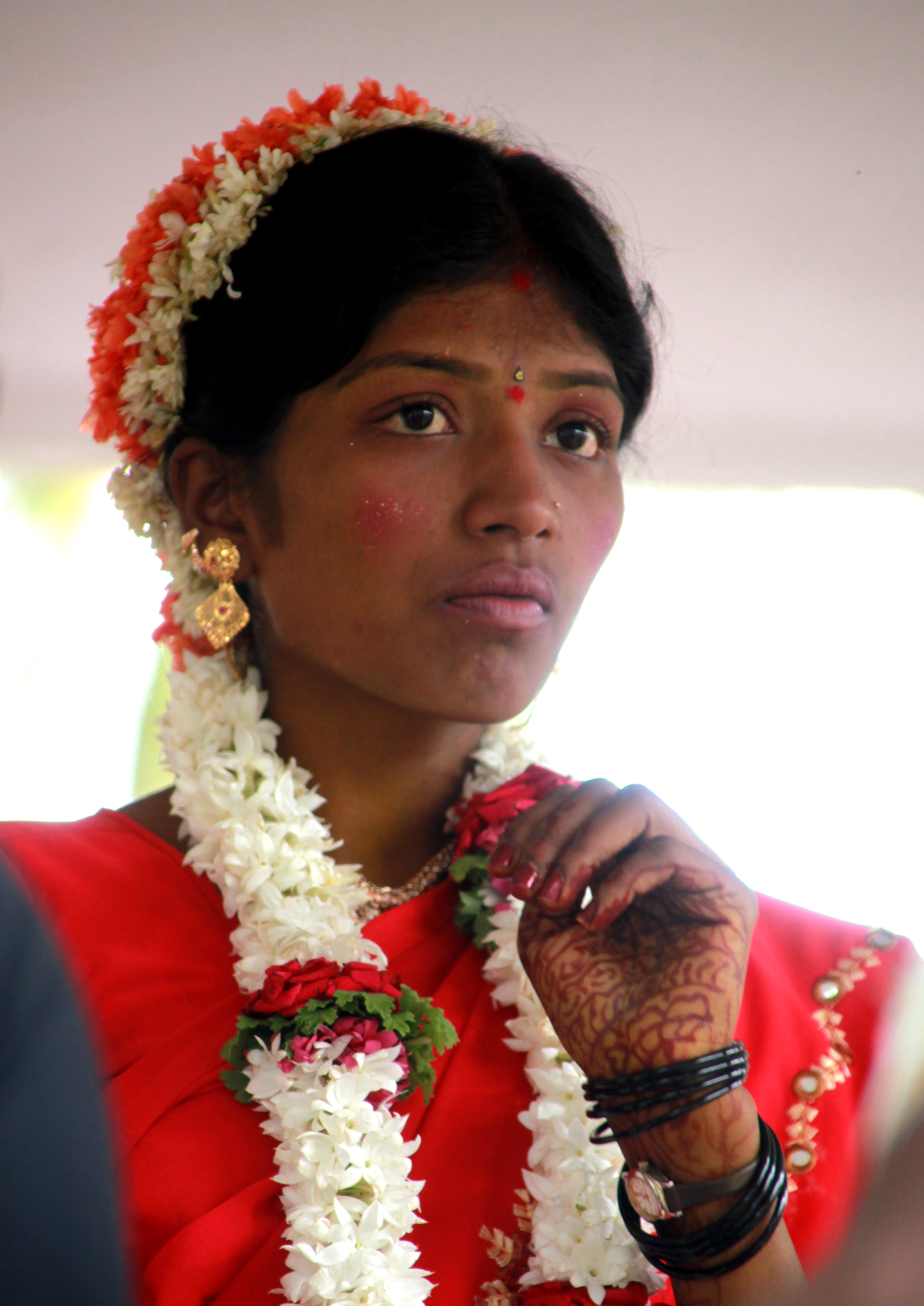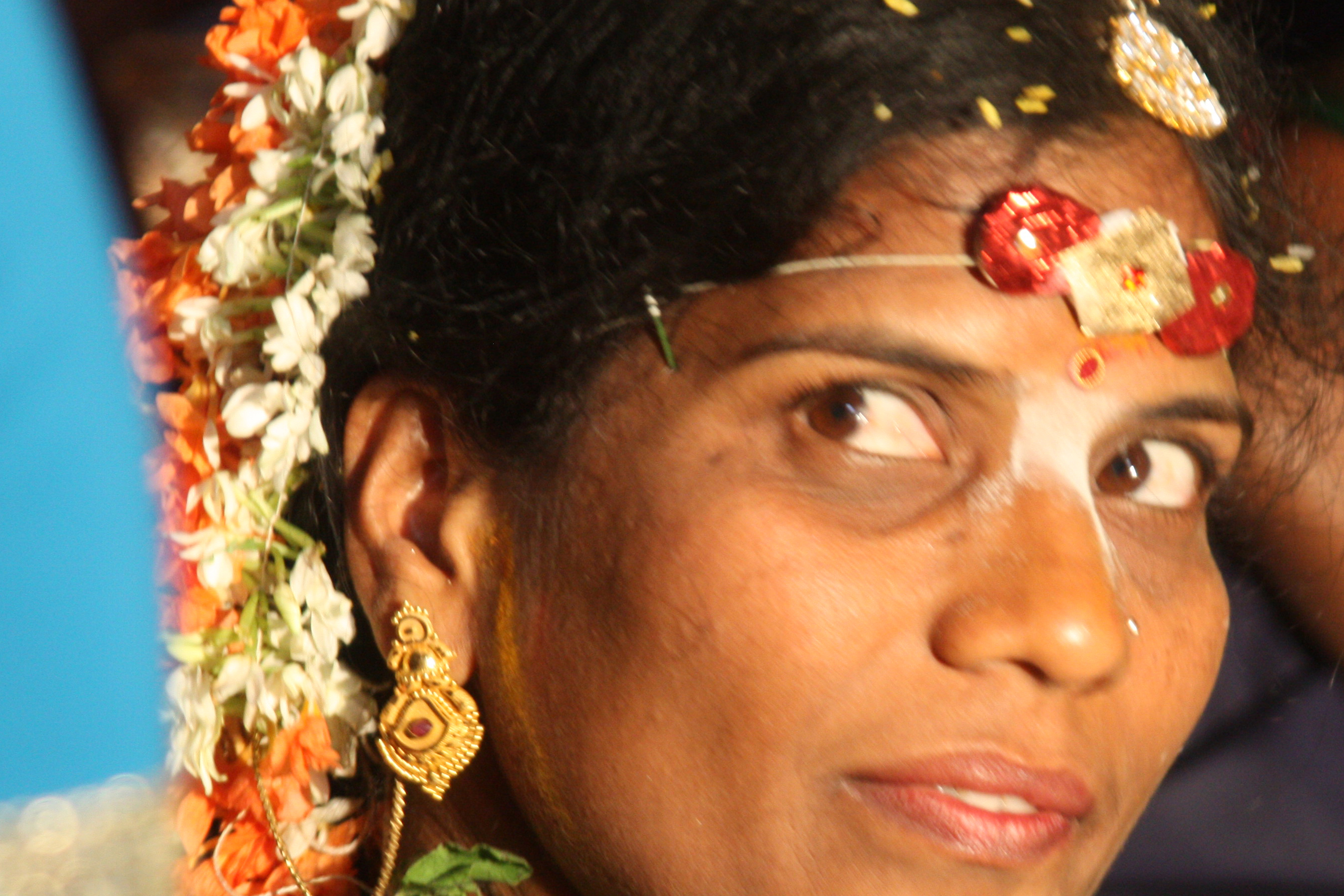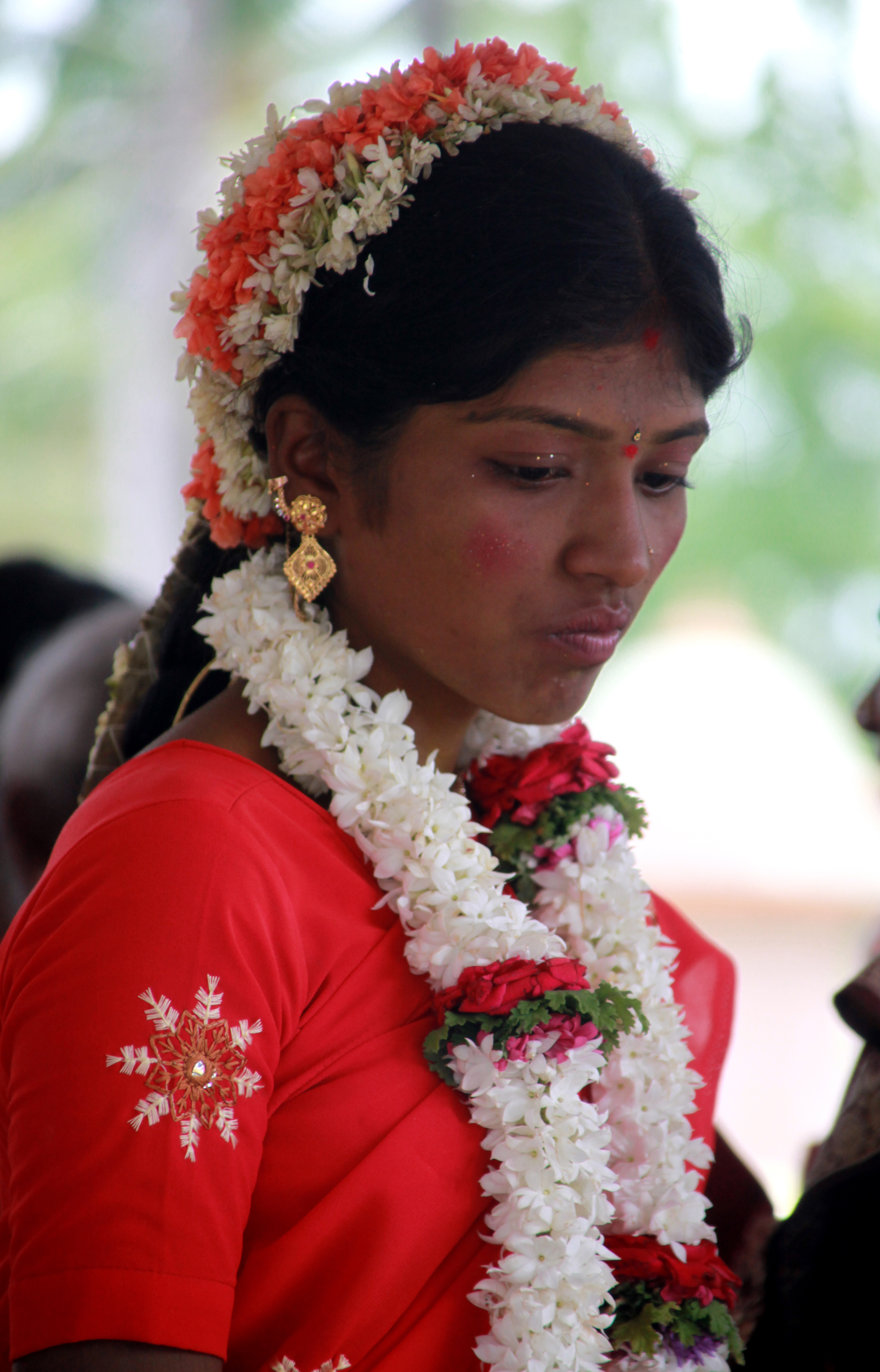 The joviality, smiles, laughter were infectious but nothing compared to the warmth of these wonderful people. I was promptly invited to the wedding ceremony and although my attire was not fitting for such an important event the thought of capturing such a beautiful moment through my lens was too much to miss, so I politely accepted the invitation. The floral head dress dominating the back of the bride was stunning. Obviously a lot patience having gone into the creation of such an ornate accessory. It acted as a picture surround framing the various expressions that this bride was displaying throughout the ceremony. There were fleeting glimpses of apprehension, delight, coyness, bewilderment and disbelief showing on the bride’s face and once again I found myself admiring the strength of these women. How many weddings had I attended where the brides just gave in to their emotions, yet here I witnessed a true strength of self-control? It was such a delight to capture these emotions and add to my portfolio ‘The Real’ Women of India. Not only was I able to portray her emotions but also the beautiful attire worn by the bride, bridegroom and their guests. I was also excited to encapsulate some of the wedding rituals such as the pouring of milk and honey over the coconut and through the hands of the bride and bridegroom. Throwing of rice over the married couple, the generosity of gifts given by the guests, these were breathtaking actions I was able to witness. What an amazing experience! Having taken some telling photographs it was time to continue on my way. What a trip which turned out to be an unplanned wedding shoot……………
