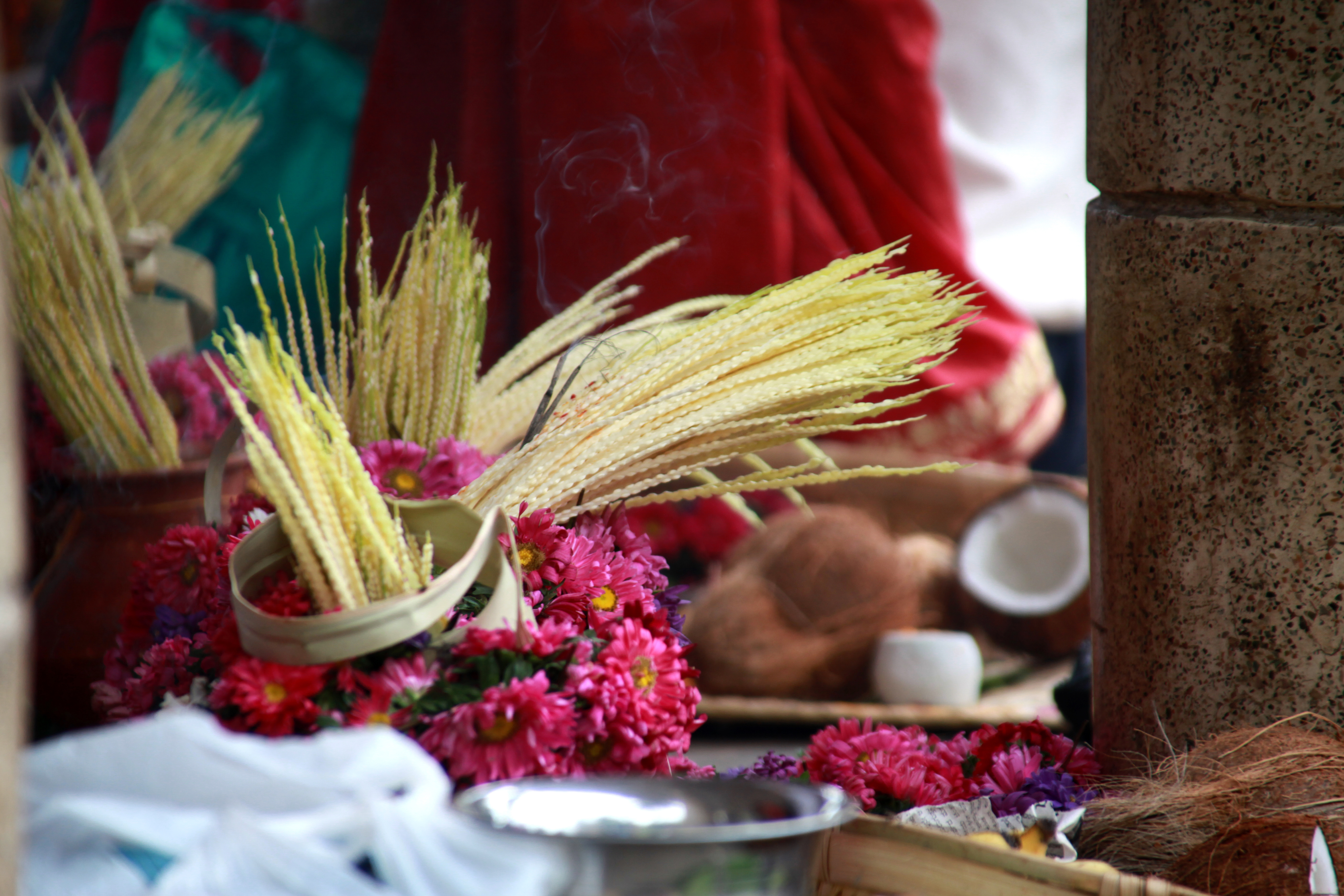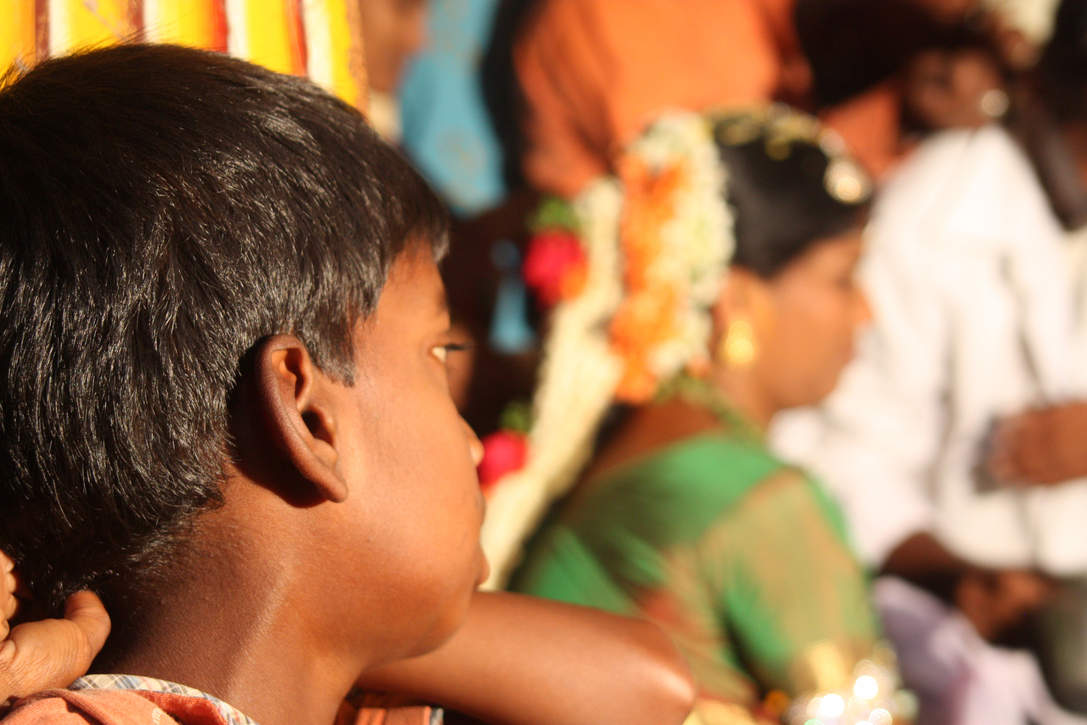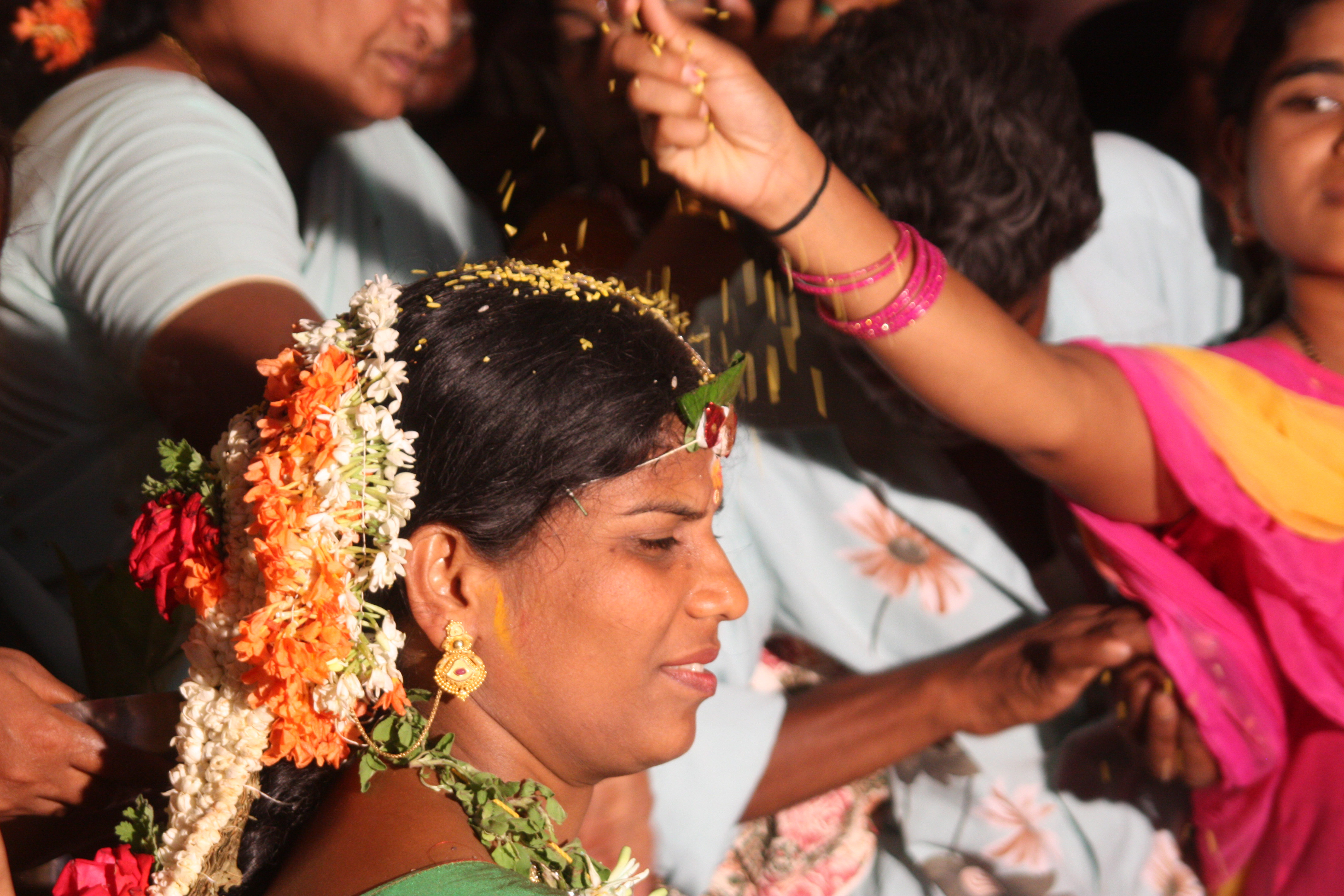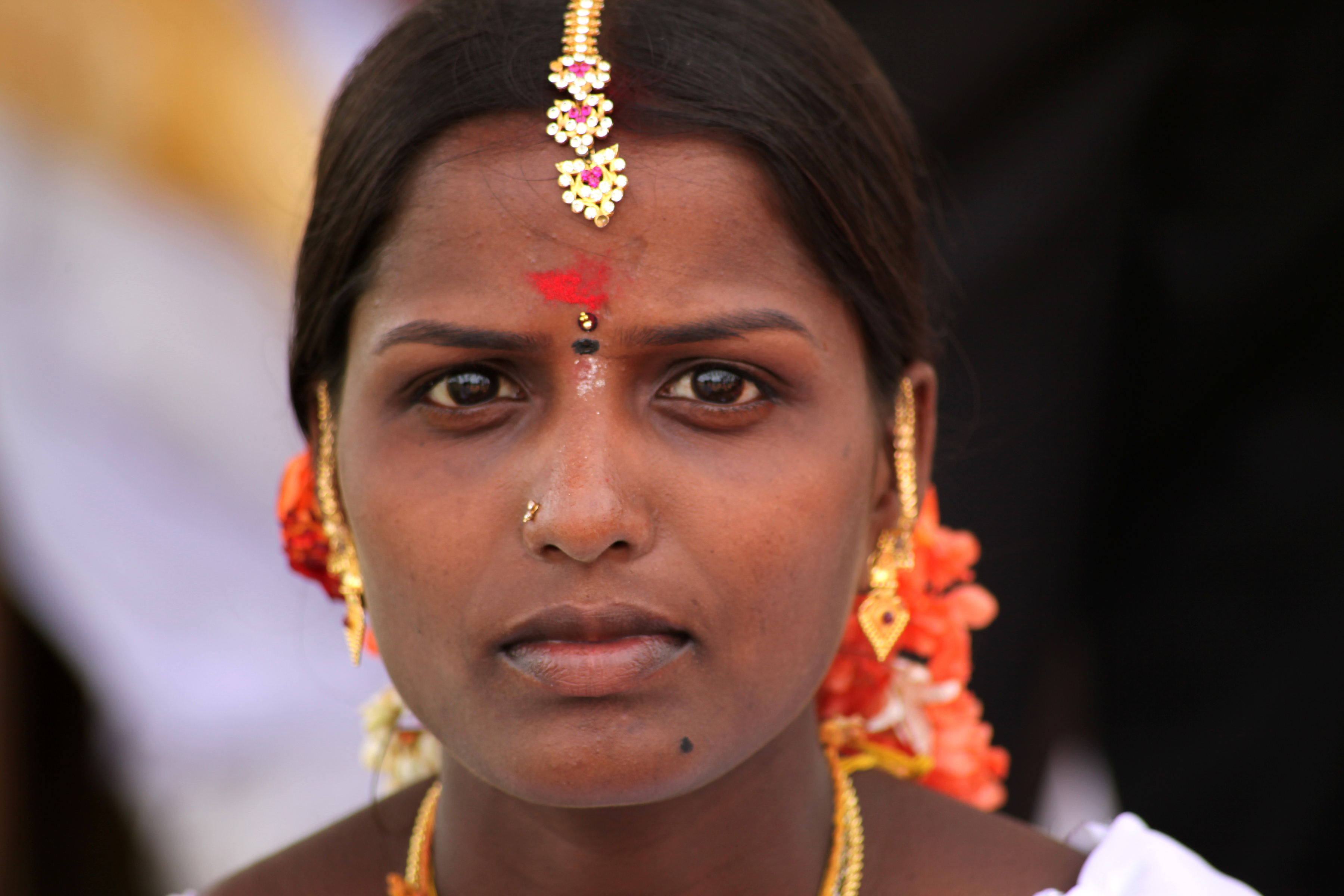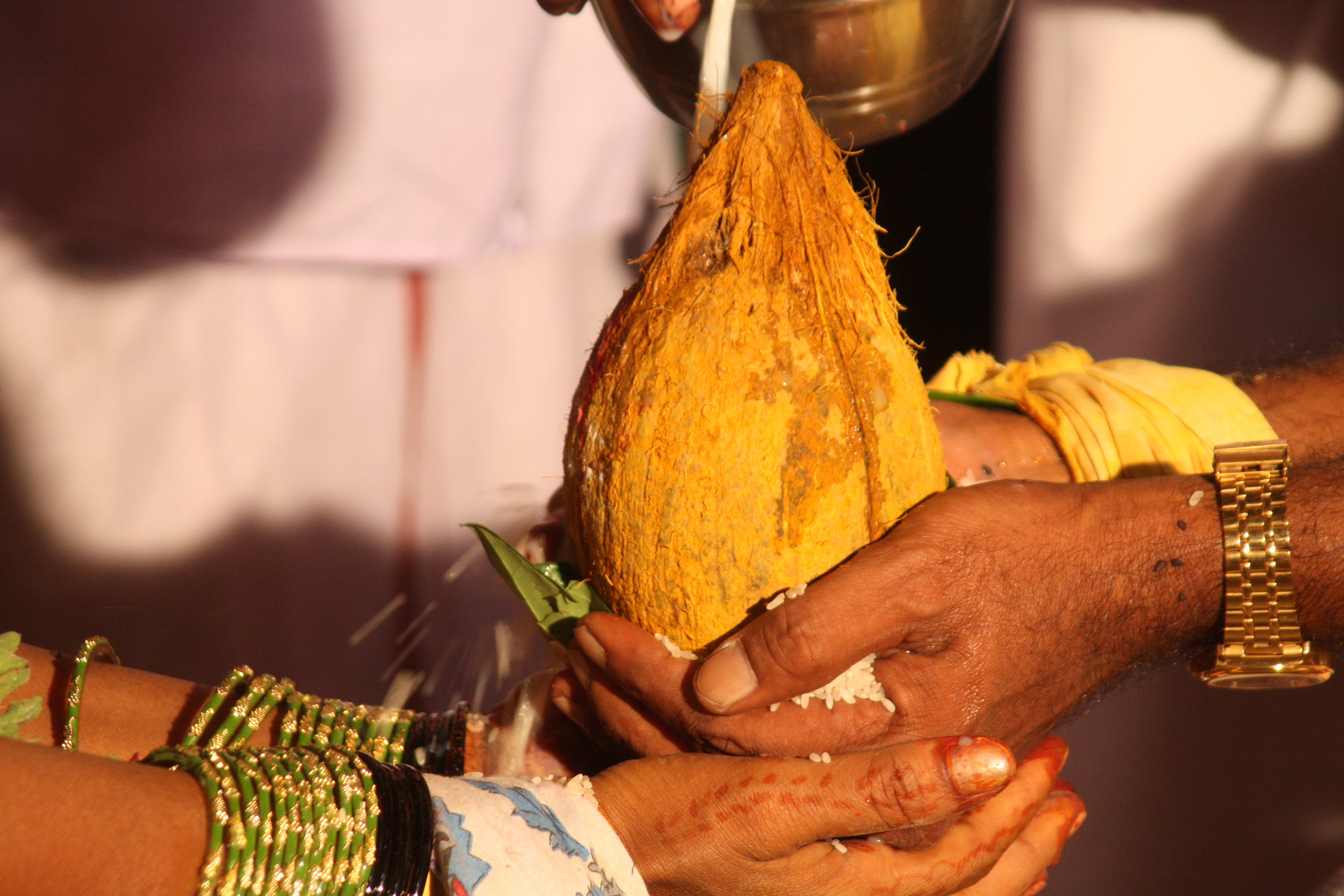 The joviality, smiles, laughter were infectious but nothing compared to the warmth of these wonderful people. I was promptly invited to the wedding ceremony and although my attire was not fitting for such an important event the thought of capturing such a beautiful moment through my lens was too much to miss, so I politely accepted the invitation. The floral head dress dominating the back of the bride was stunning. Obviously a lot patience having gone into the creation of such an ornate accessory. It acted as a picture surround framing the various expressions that this bride was displaying throughout the ceremony. There were fleeting glimpses of apprehension, delight, coyness, bewilderment and disbelief showing on the bride’s face and once again I found myself admiring the strength of these women. How many weddings had I attended where the brides just gave in to their emotions, yet here I witnessed a true strength of self-control? It was such a delight to capture these emotions and add to my portfolio ‘The Real’ Women of India. Not only was I able to portray her emotions but also the beautiful attire worn by the bride, bridegroom and their guests. I was also excited to encapsulate some of the wedding rituals such as the pouring of milk and honey over the coconut and through the hands of the bride and bridegroom. Throwing of rice over the married couple, the generosity of gifts given by the guests, these were breathtaking actions I was able to witness. What an amazing experience! Having taken some telling photographs it was time to continue on my way. What a trip which turned out to be an unplanned wedding shoot……………