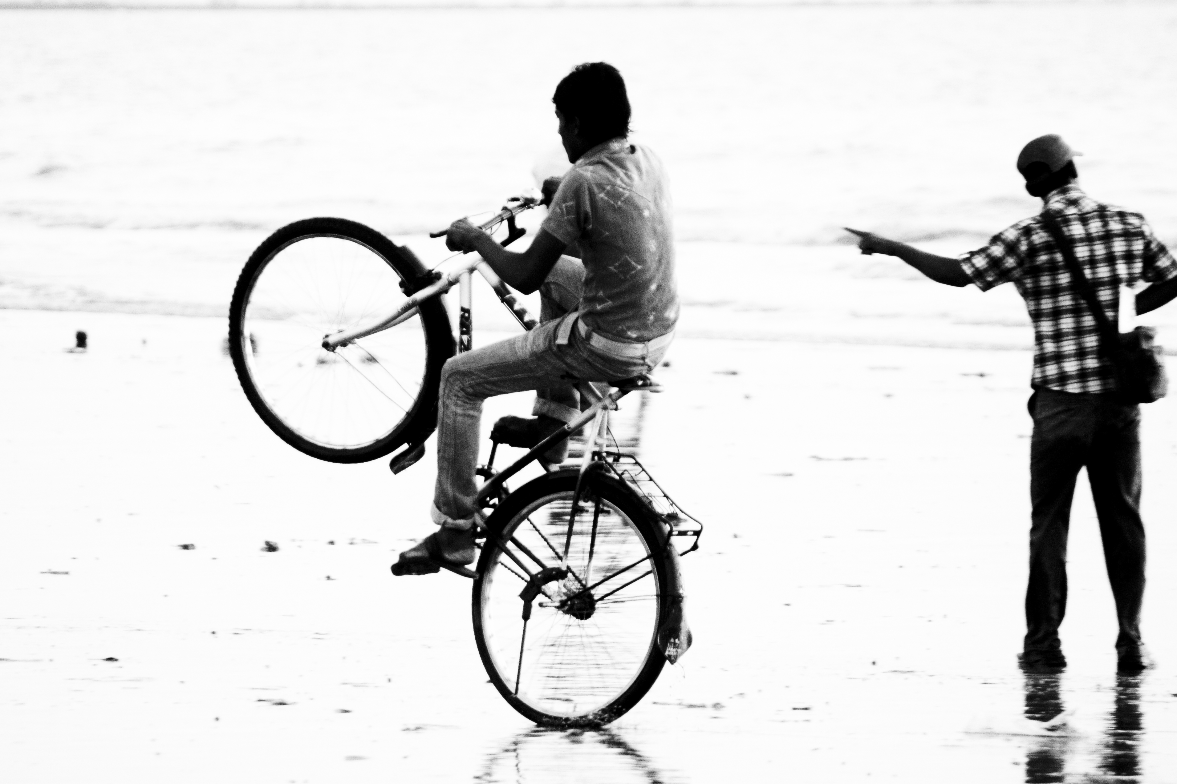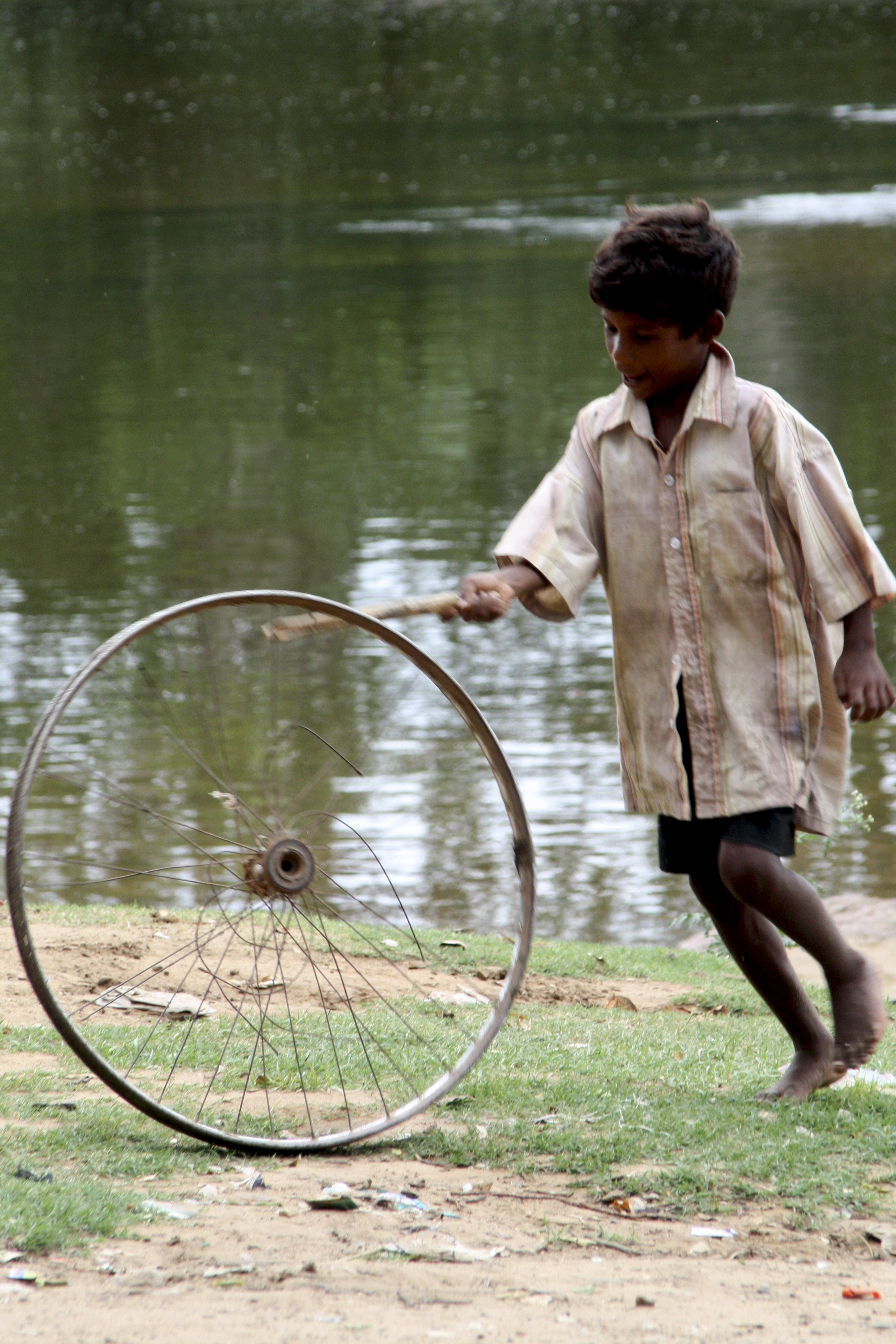 Throughout my extensive travels in India I have had the opportunity to capture images of people through my camera lens regardless of age, gender, or status, many having fun. While in Mumbai I watched some young boys riding their bike across the beach into the sunset, ignorant to what was happening elsewhere in the world, the most important fixation at that moment being who could do the best ‘wheelie’ on their bike. The two monks in Coorg enjoy their precious spare time riding round the town on their motor scooter, a huge smile dominating one of the monks face, what a prized moment to capture. I watched the boy playing happily chasing a spare wheel with a stick, along the river side, not even aware of people around him, totally lost in his own game. I stopped to reminisce about the children back home, no longer did we see children playing with make shift toys but youngsters on sparkling new bicycles or with expensive toys, still keeping themselves amused but were they any happier than this young lad with his makeshift toy? I doubt it!