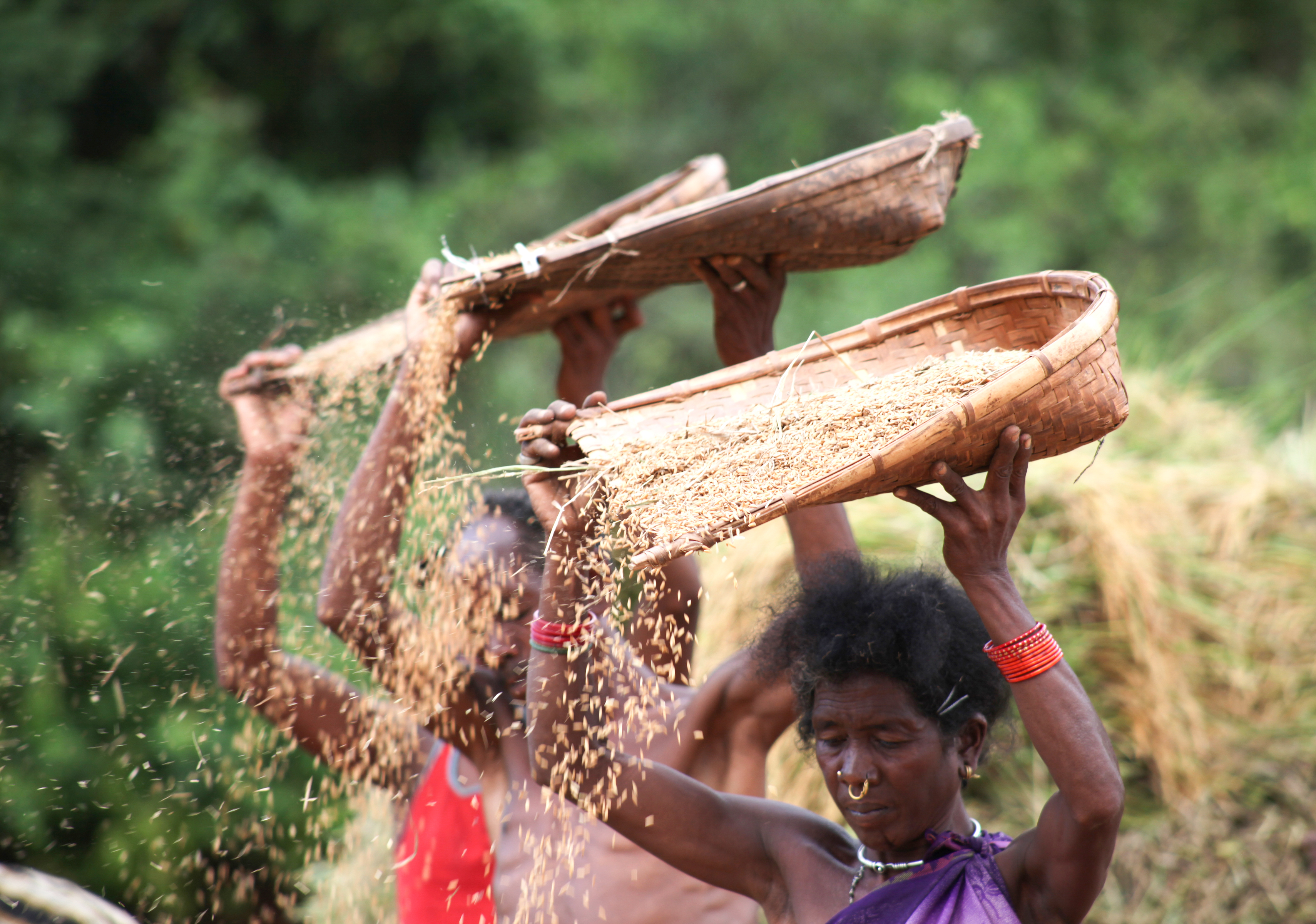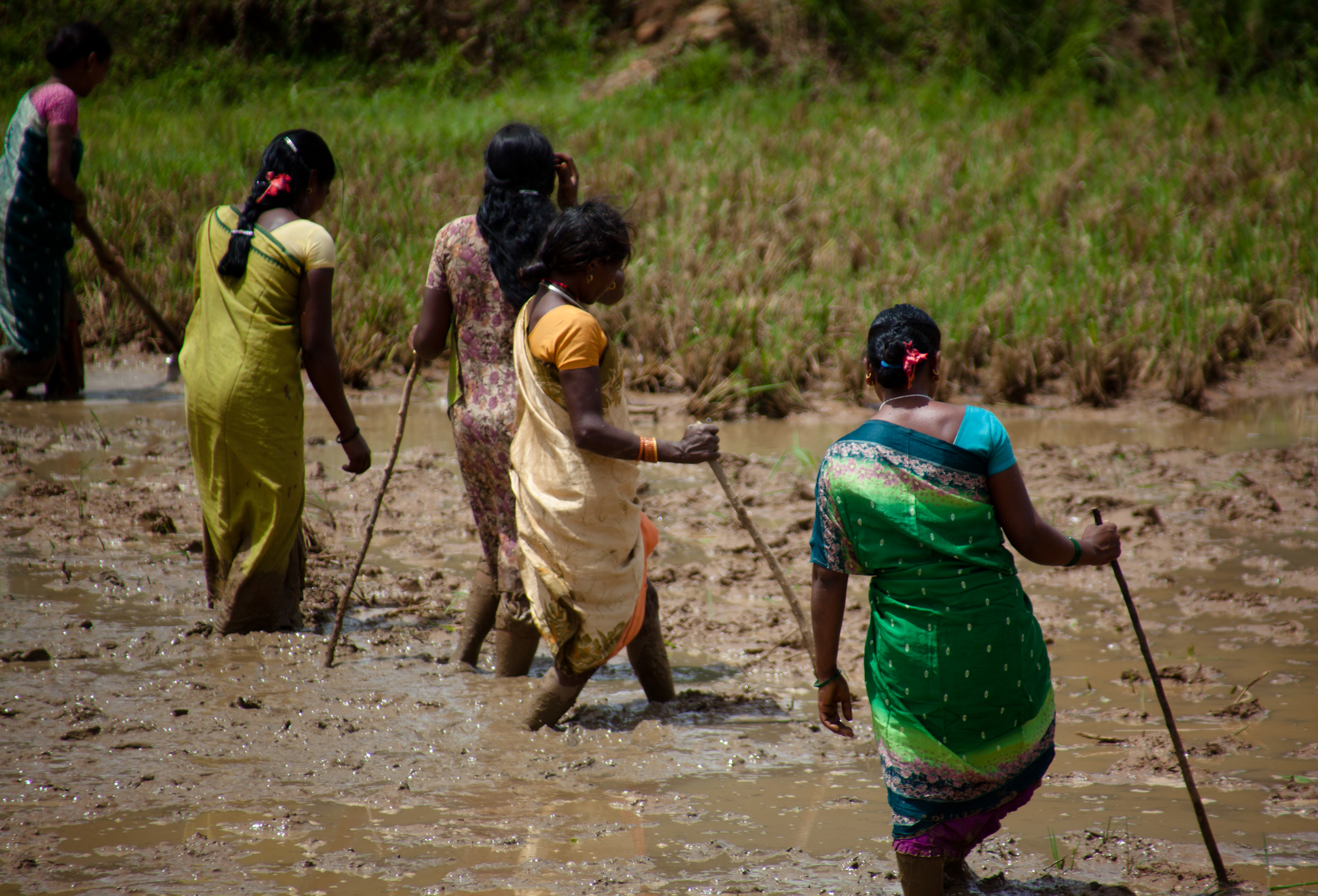 Having completed my visit with the plantation workers it was time to move onto the next tribal village, Gondivalasa Village. The journey to the next hamlet took us by a route that had suffered damage from the severe rains, the bridge having collapsed meant we had to take a short diversion but what a route amidst the beautiful landscape, passing rivers, agriculture fields and watching the steam trains winding through the valley. For some time we travelled through the countryside not seeing a single person then in the distance was our destination. Before long some of the residents of the parish became visible working in the nearby fields. Entering the village the welcome was so warm and genuine and I was eager to meet the local inhabitants. My object to capture the fervour of these people through my lens to share with others was to be slightly tricky. As I started to move through the narrow paths I was amused to find groups of, predominately women, following me, obviously curious as to what I was doing.