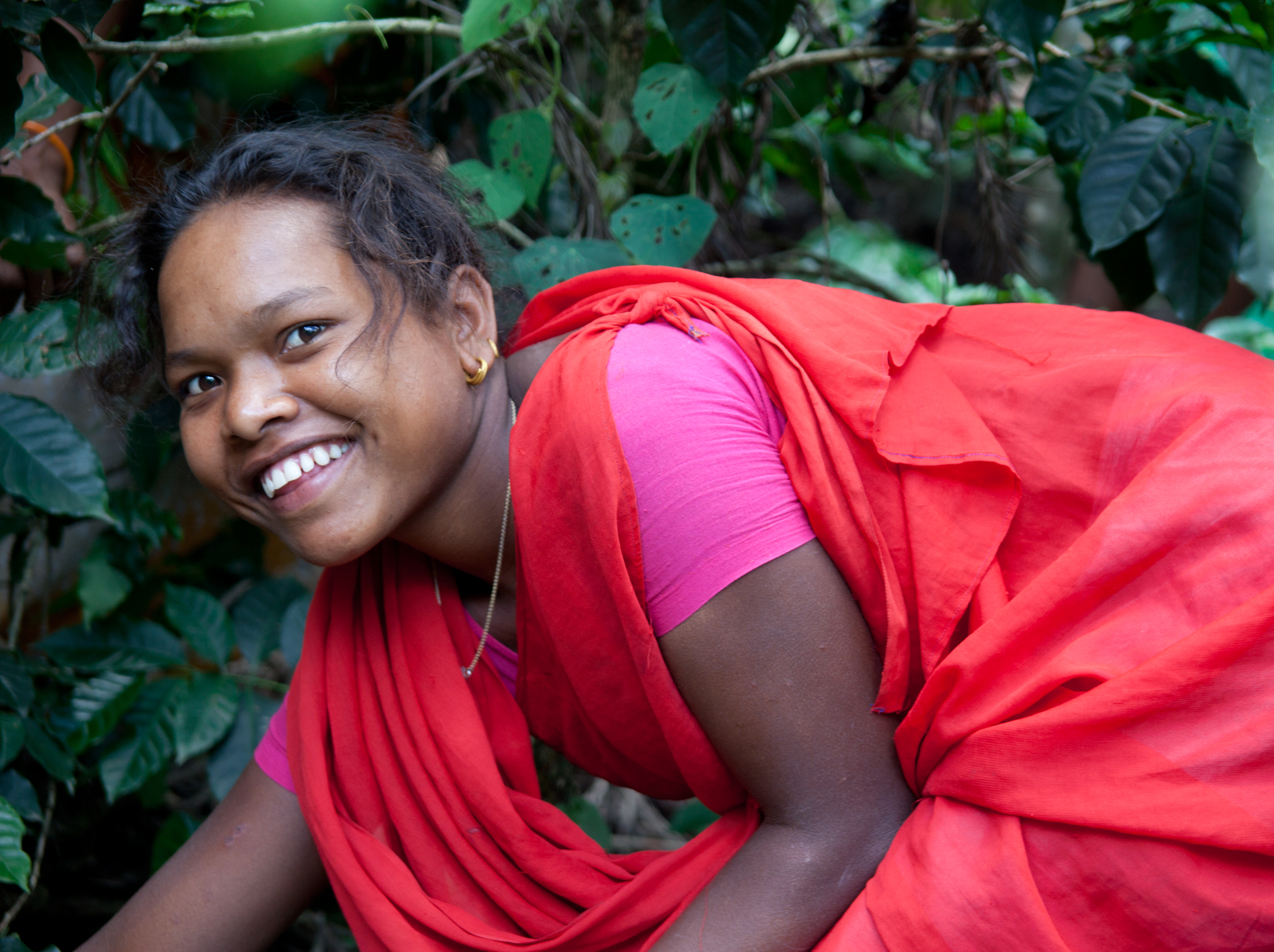 The next stop was to visit the local tribal people working in the coffee plantations. As I have often witnessed during my travels the team work exhibited was effortless and the harmony between the workers quite remarkable. As I clambered amongst the coffee plants armed with camera and lens carefully anticipating each step to avoid the embarrassment of falling, I was taken by the agility of these individuals and felt quite inept. The vivid colours of the saris were framed by the backdrop of the dramatic greens of the lush plants. This encounter was so different from some of my previous experiences more tranquil and relaxing. With over 80,000 coffee farmers in the region I felt honoured to have had quality time with just a small example of these special people.