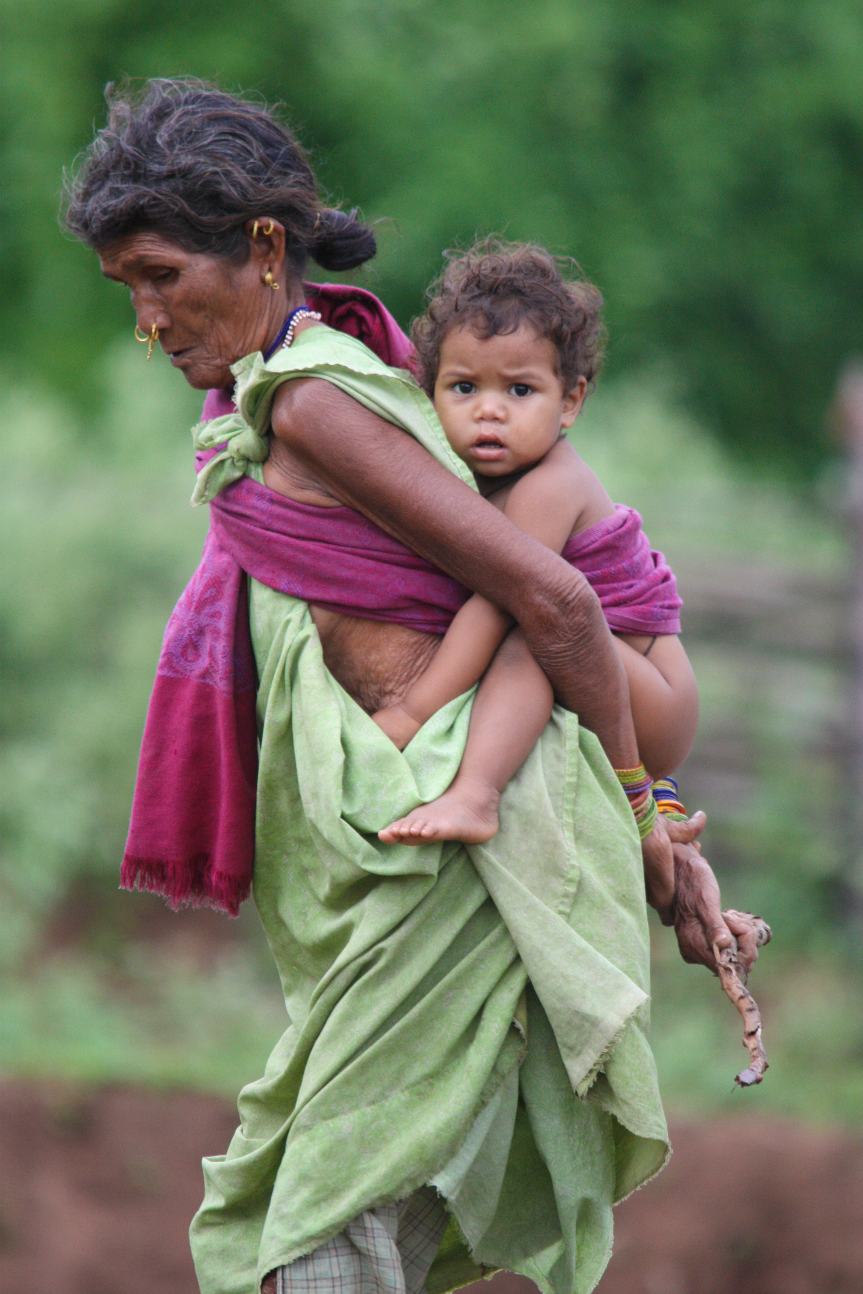 As we approached the first village I wondered what surprises I would encounter. We drove as far as we could then trekked towards the hamlet. On route we came across a group of females busily washing their pots and clothes, full of banter and laughter they stopped to give a beaming smile and a wave then busily carried on their daily chores. As we entered the village I was amazed at the views that surrounded the village, I thought of the congestion over populated and polluted cities in other parts of India and other parts of the world. I wandered through this tribal village to find not only magnificent views but also warm friendly people, truly ‘gems’ of these valleys. Many of the younger inhabitants of the hamlet were busy in the fields or tending their animals and evidently the elder community were left in charge of the home chores and minding the babies. The reception I received was incredible as I weaved my way through the small lanes. The evidence of the strength of these tribal women was unmistakeable as they busily went about their daily chores laden with their heavy loads.