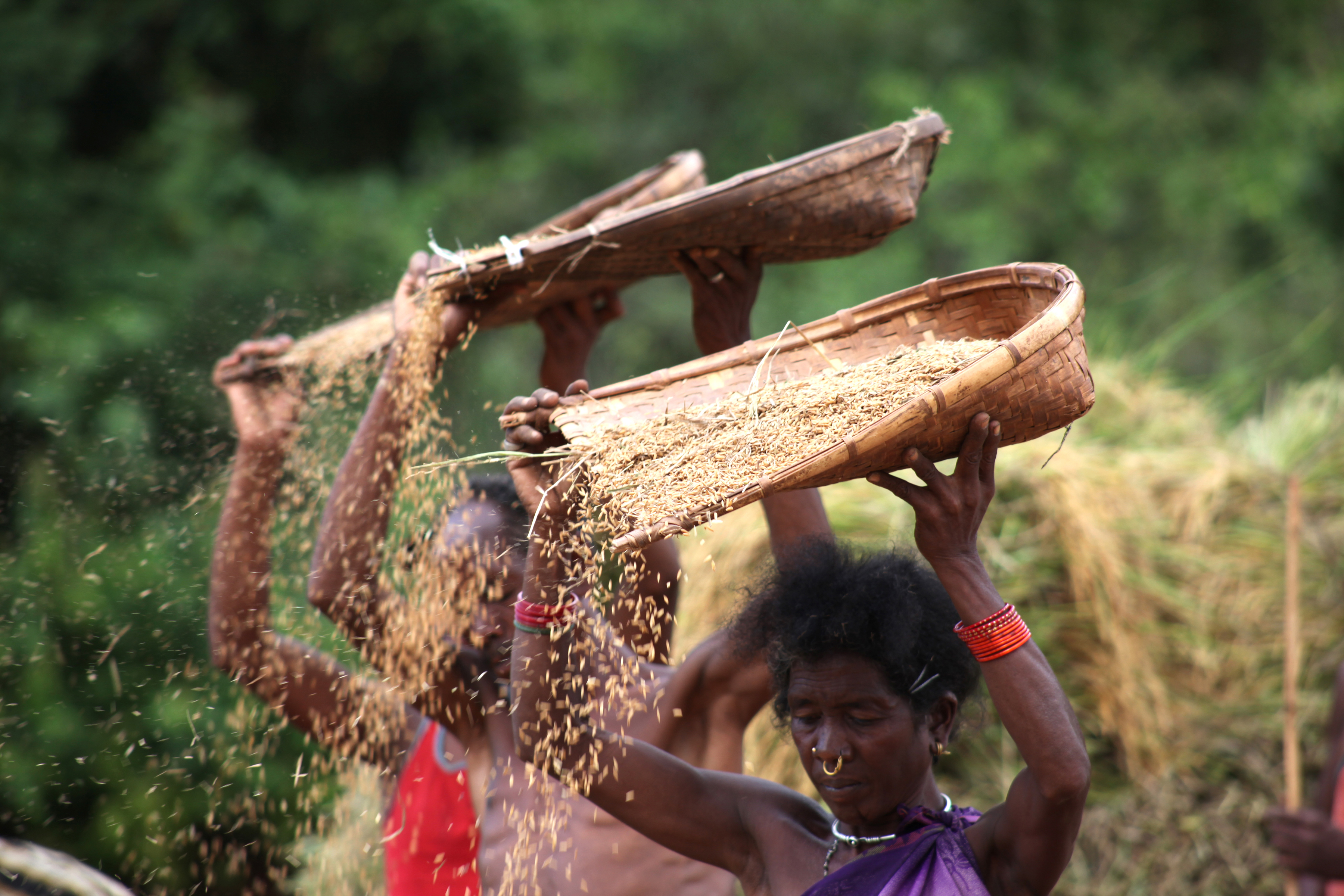 As I travelled from village to village I encountered on the way members of the local Parishes workingin the fields. The skill that a family shown as they successfully separated the grain from the husksdue to working in harmony intrigued me. I was in awe as I watched this family unit, there was such a strong bond that this group displayed, it was a pleasure to observe. I felt I had to capture this ‘picture’ without disturbing the emotions that were evident, so I positioned myself at a safe distance and used my 500mm telephoto lens to ensure that I could portray the falling grains.