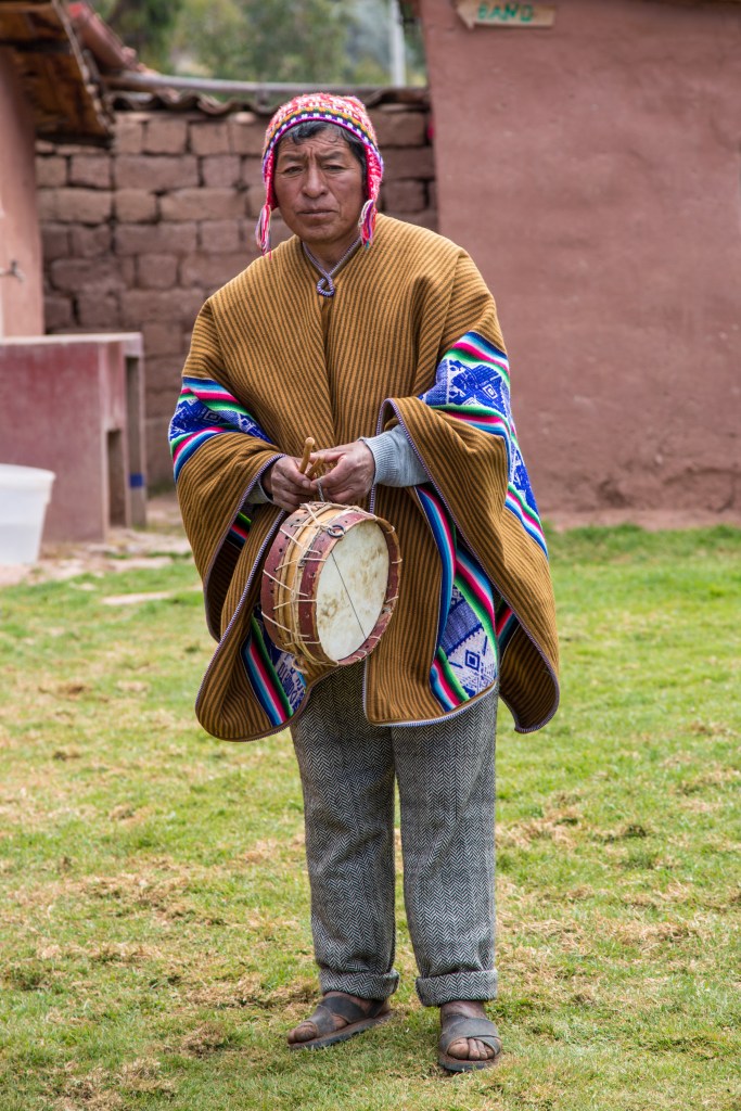 Now we were on the next stage of the journey, a visit to a local home where we would have lunch. Again the people were so lovely and welcomed us with open arms. As expected the locals entertained us with song prior to lunch. The lunch was a delicious, basic local dish. They were very informative in how the daily life of Peruvian living in rural areas would be spent. Looking after their life stock, chopping wood, working the land. Finally they went through their ritual