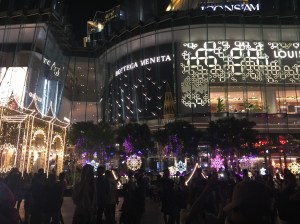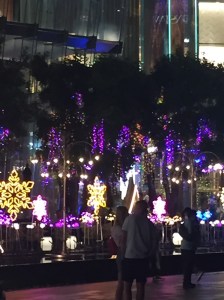 We ate noodles in the restaurant which cost all of THB260 equivalent to £6 for the both of us, we can live with that…. Our wonderful tuk tuk driver dropped us off near the pier so we could get our hop on hop of ferry. We decided to jump off at the Iconsiam Mall to look at the Christmas lights and decorations. What a surprise within 5 minutes of arriving they started a water and light show to music. It truly took your breath away, the water fountains spurting 30 feet into the sky dancing to the music. The lights creating hands and Michael Jackson images along with an abundance of patterns. What a treat, I thought Thailand didn’t celebrate Christmas, it was extremely festive here with Christmas trees etc.