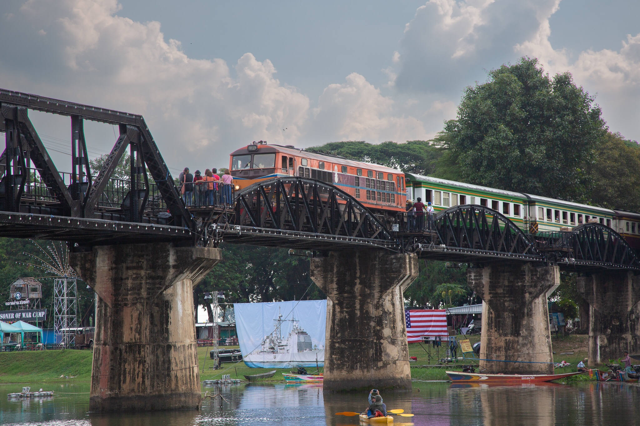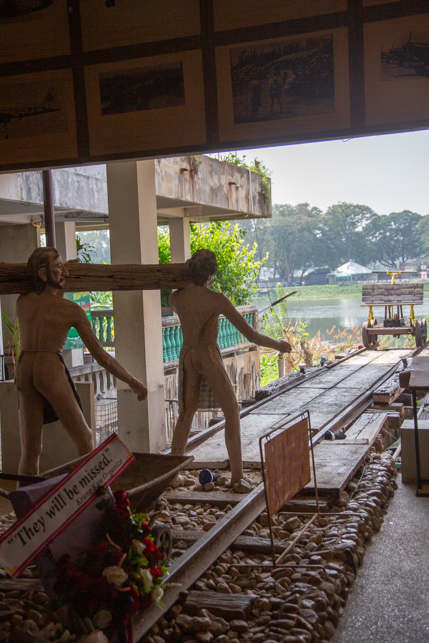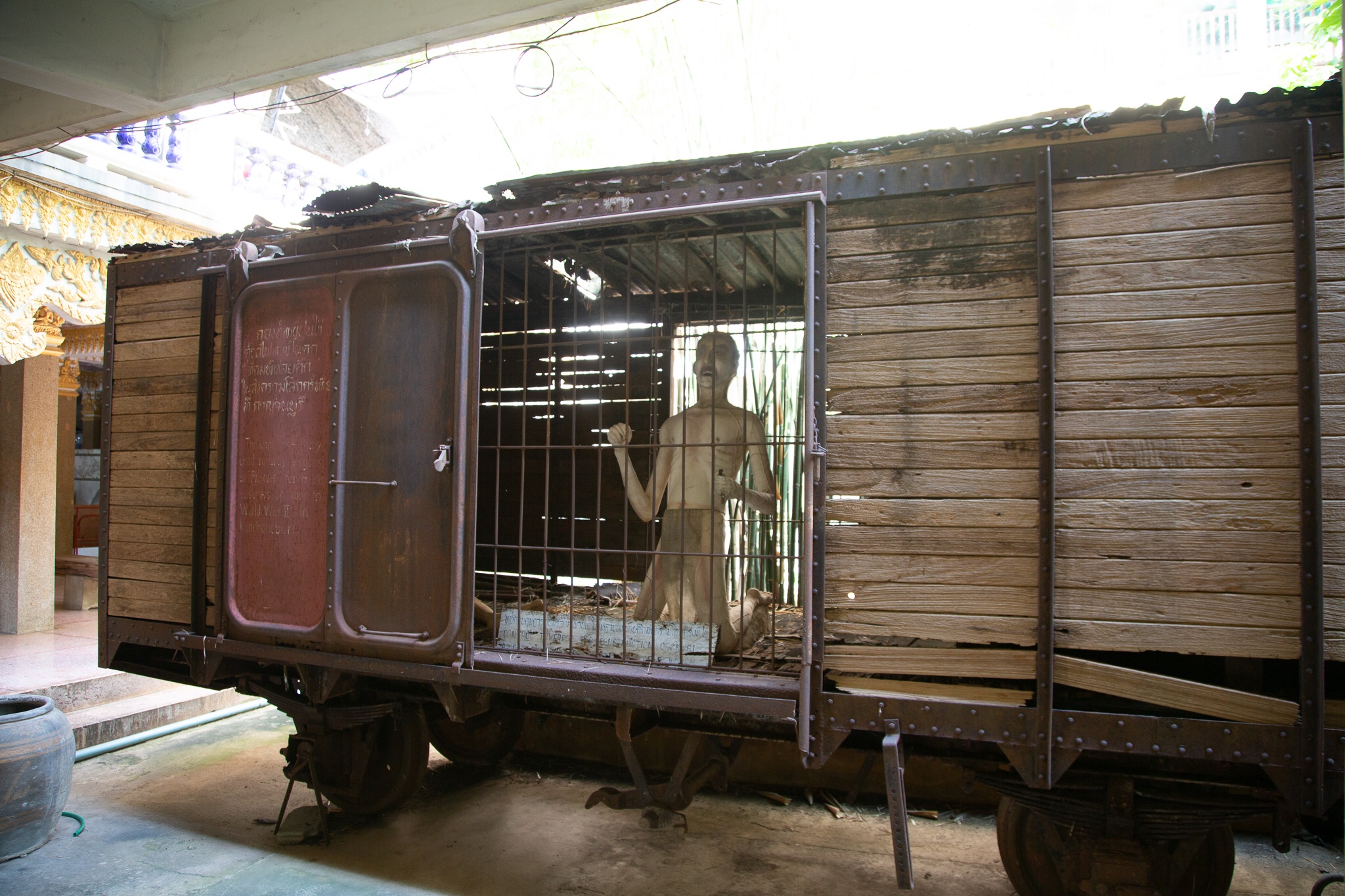 Today we planned to take the train to the death railway. We bought tickets from the small train ticket office over the bridge and near the rail tracks. It cost THB200 return trip and what an experience for THB200. The train took around one hour. A pleasant journey as it travelled through rural areas. There was the amusement of the sellers walking up and down the train selling drinks, sticky rice, doughnuts and much more. Wow did we really go over the rickety wooden bridge on this train! What an experience but at the same time it hit you and a stream of sadness got hold. How could there be such cruelty. To even think that human beings could cut into a rock and create a bridge as such, the number of deaths just building the construction is unthinkable as well as the treatment of the POW, how lucky are we not to have witnessed such cruelty. We walked over the wooden bridge to a small cave believed to have been used as a campsite for the Japanese. Certainly, a sobering trip but one worth doing.