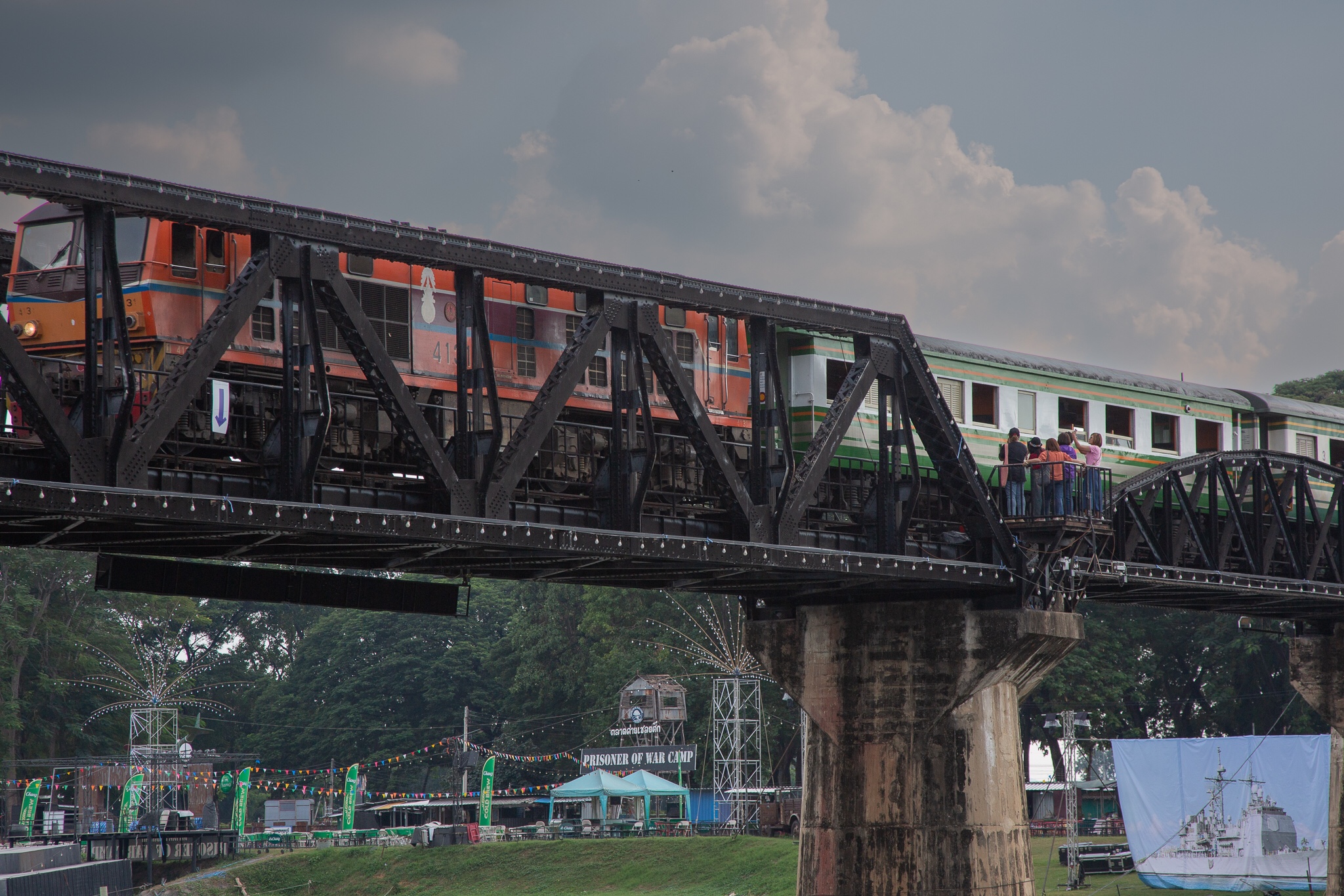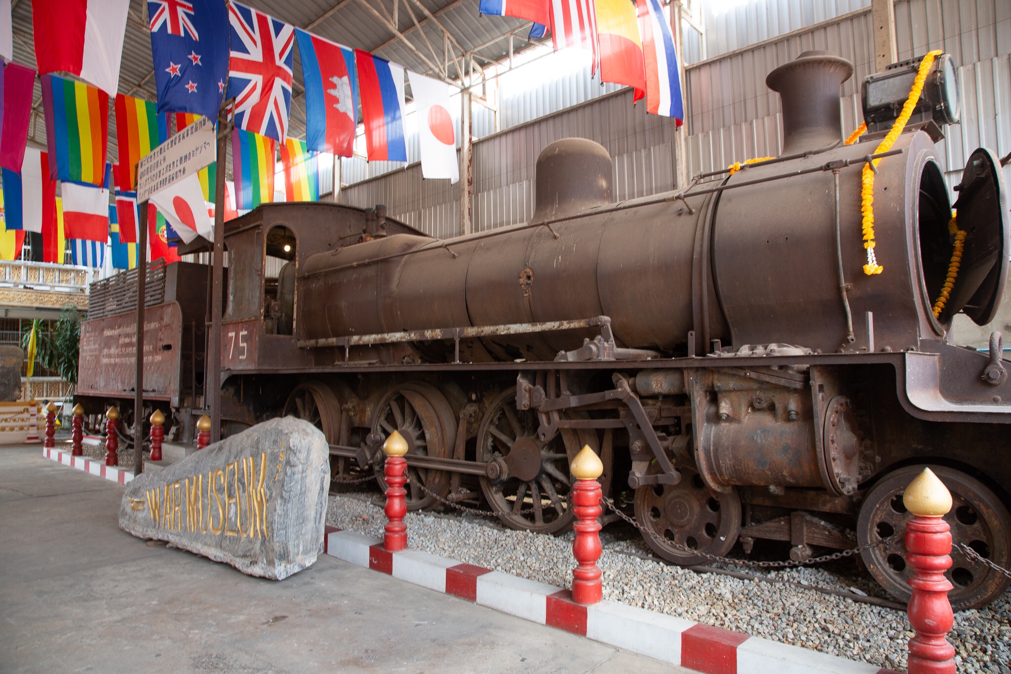 We arrived at our destination and booked into our hotel, our next home for the next 3 nights. After checking into the hotel, we were keen to see the Bridge over the River Kwai which turned out to be just a 5-minute walk from our hotel. We walked along the bridge to the side where there are restaurants, coffee bars, market and some shops. We sat and had a drink at the restaurant overlooking the river and the bridge. We strolled back to the hotel after examining the bridge and taking it all in. Moving out of the way when a train was due. That evening the hotel was offering a buffet on their pontoon which also overlooked the bridge, we thought this would be a good option. The grounds of the hotel are beautiful and relaxing so a good option after the long journey from the UK and the hustle and bustle of Bangkok. Off to dinner we trudged, showered and clean clothes. Unbeknown to us this evening was a re-enactment of the bombing of the bridge. From the hotel we were able to watch the fireworks, hear the planes and bombing. We had great views of the train as it made its way across the bridge and the fog and fire effects. What a surprise and unexpected show.