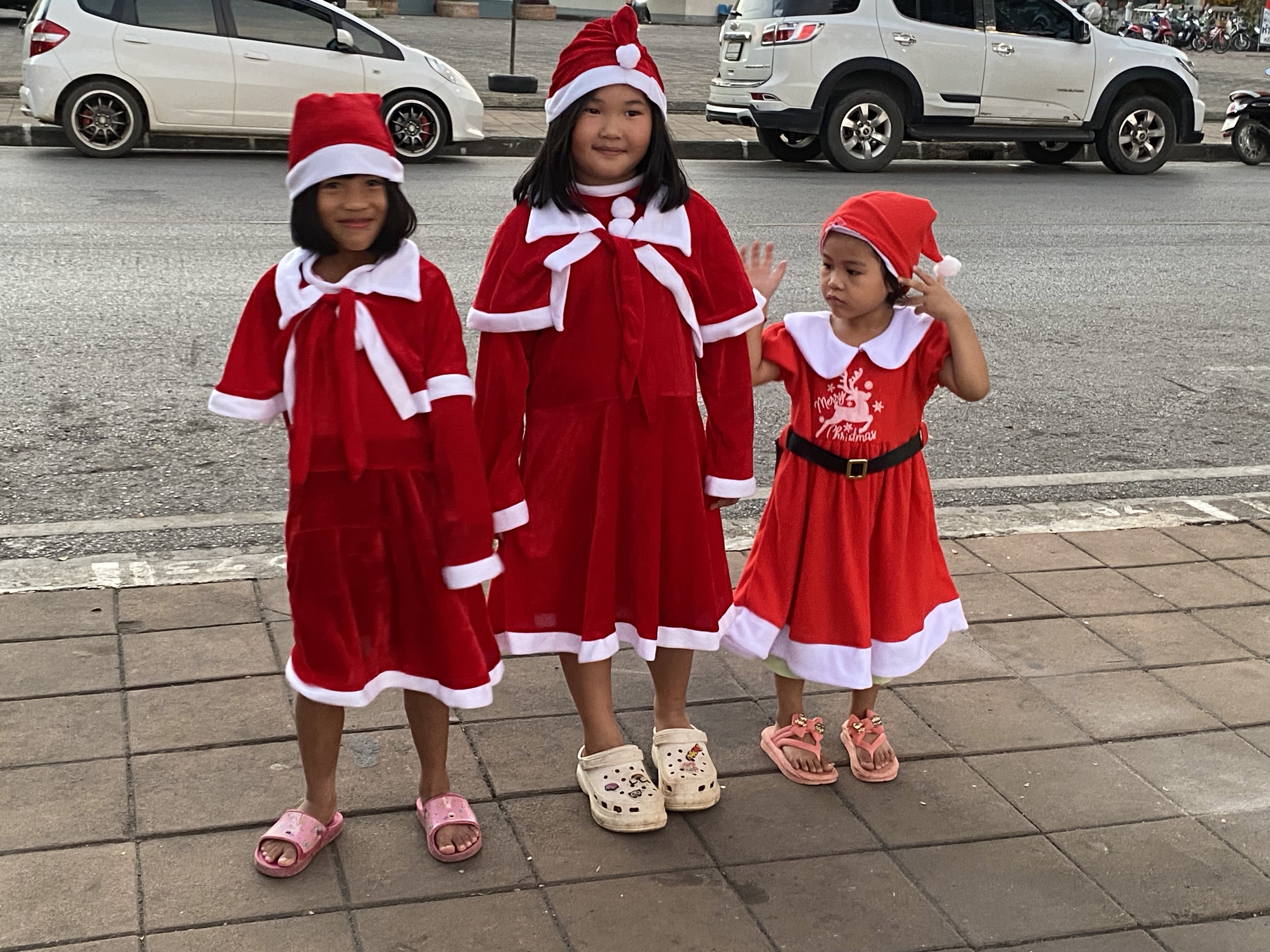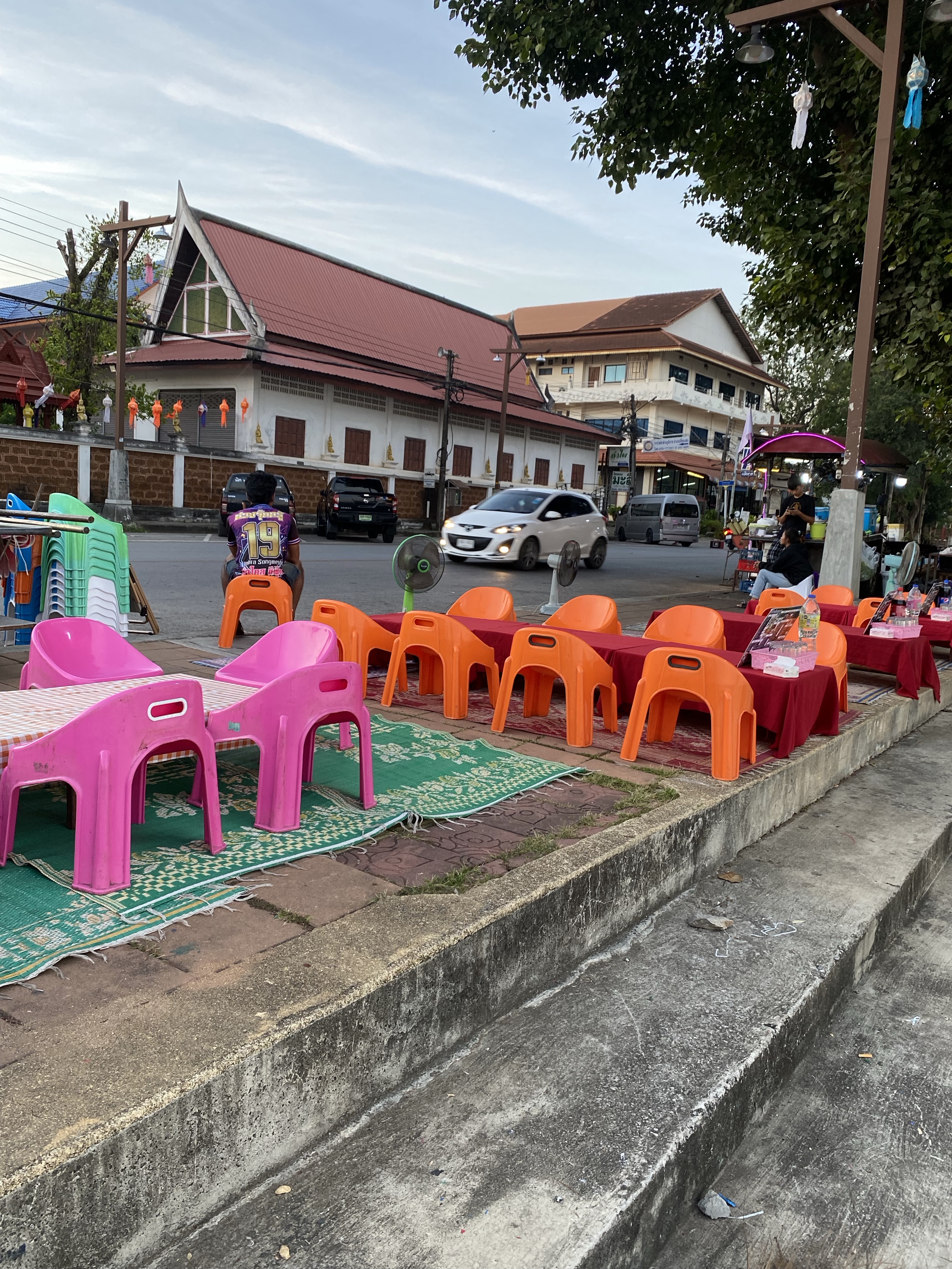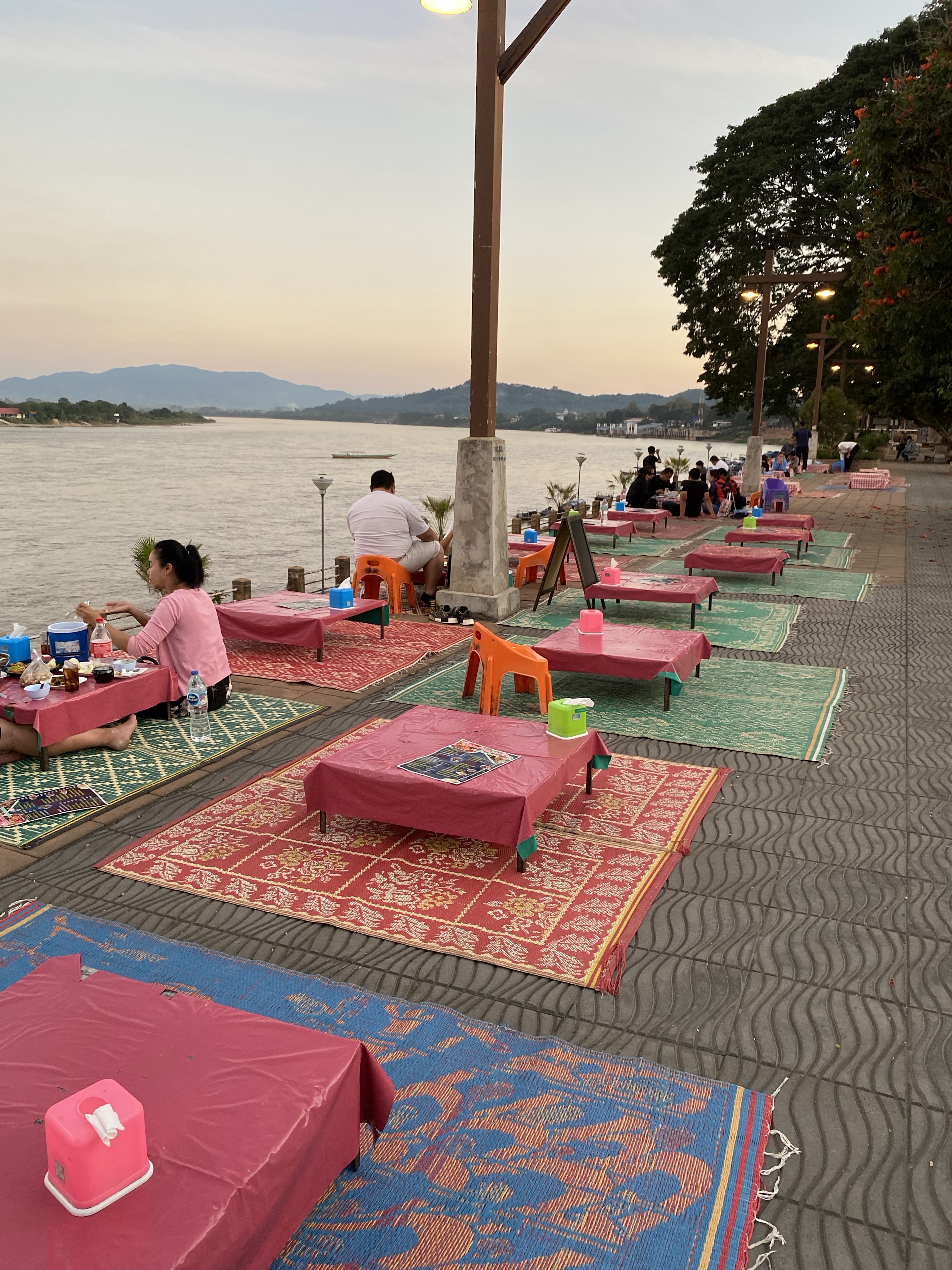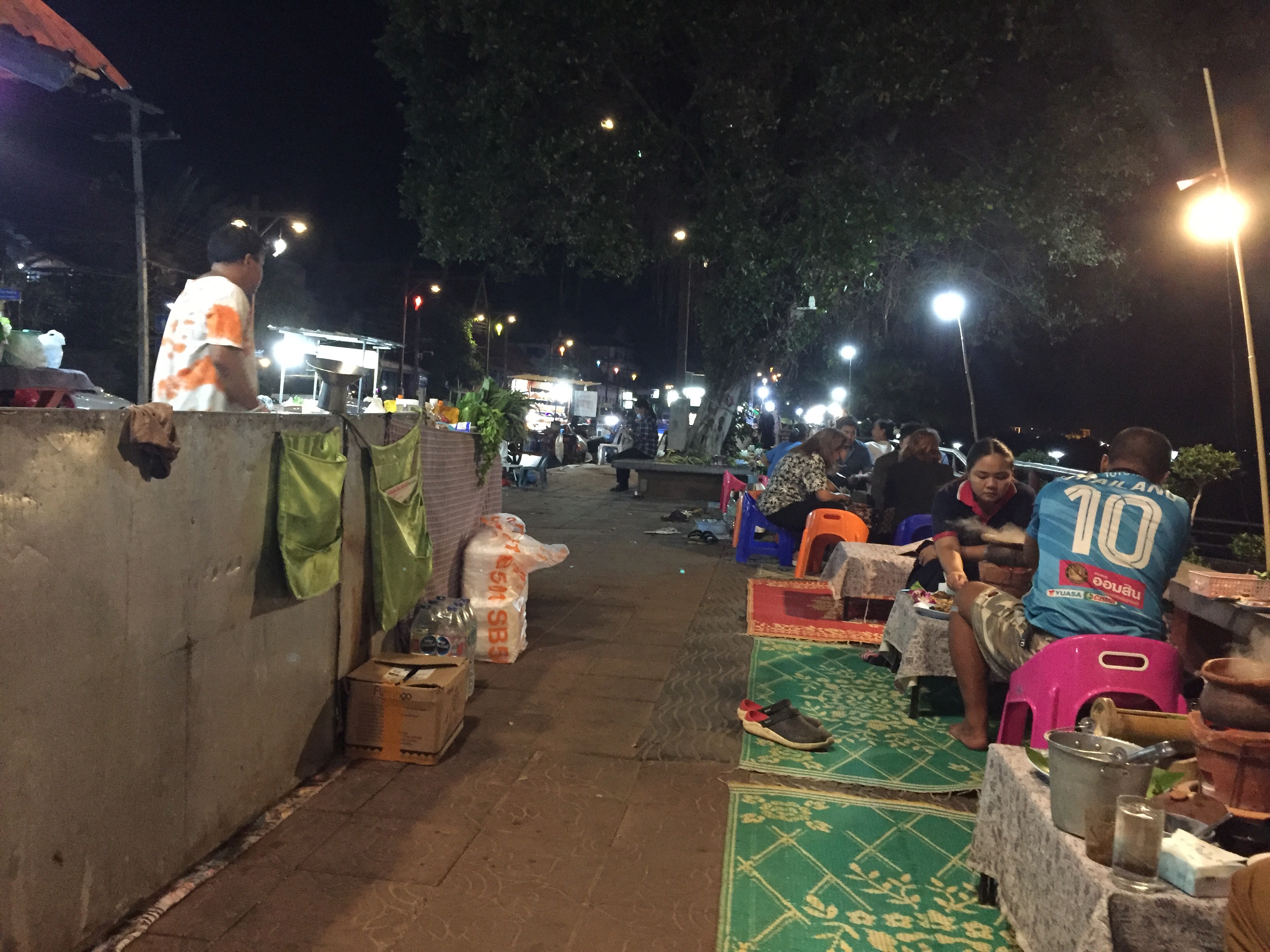 Earlier we had watched the locals starting to set out tables and chairs along the promenade next to the Mekong River. We decided this was certainly the place for dinner although there was a small challenge……….. the tables were very low, and you were expected to sit on cushions on the floor. Now getting down would be OK but getting up maybe a challenge. As we stood giggling and contemplating the situation this pop-up restaurant owner bought out two small chairs for us to sit on. Now we felt old but didn’t let it put us off. We had an amazing meal amidst all the locals, the atmosphere was jolly and electrifying, what a good decision.