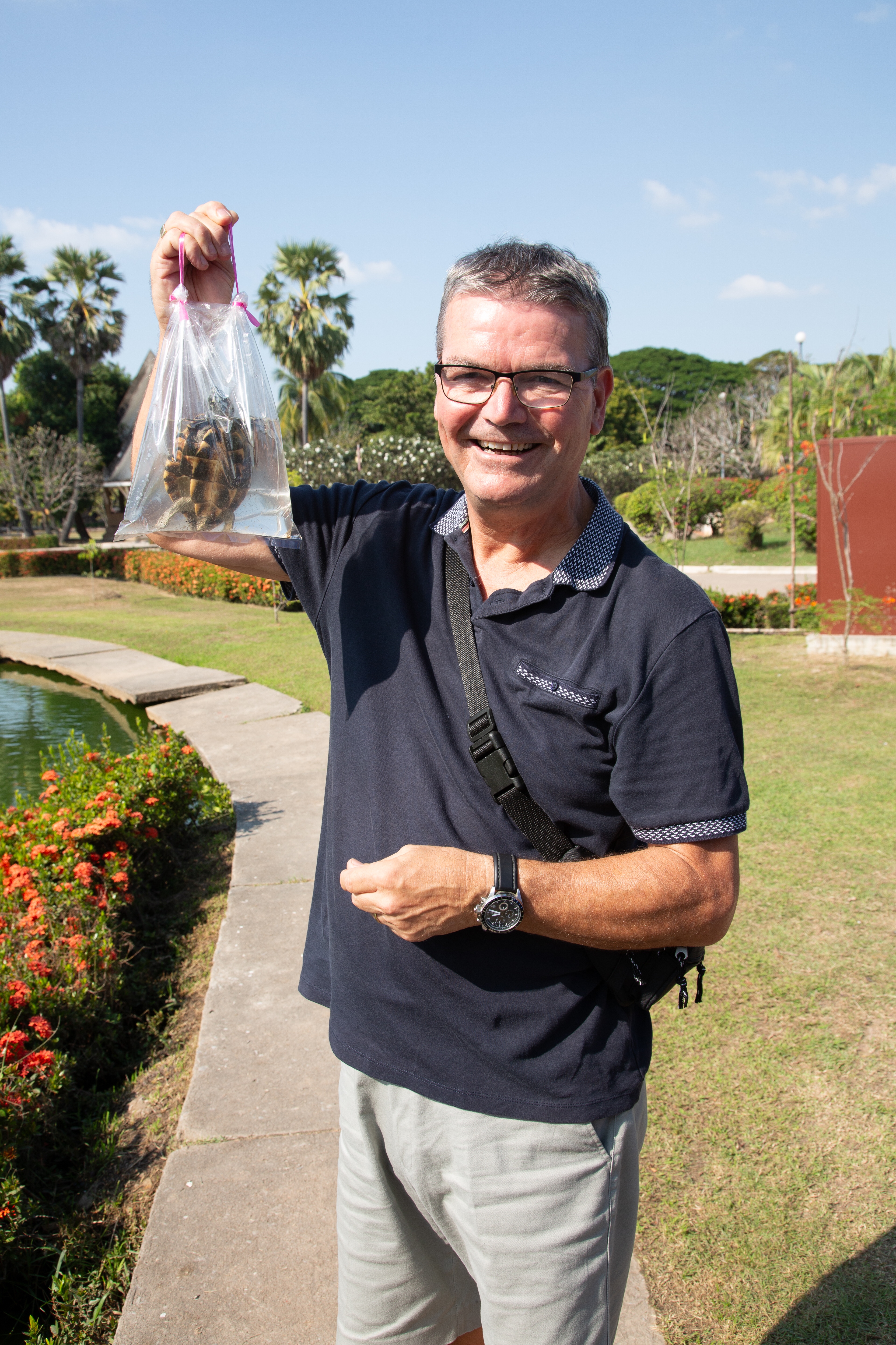 We stopped at a lake where a lady was selling marine life that you bought then let free in the lake. This was to bring you good luck and health. The husband decided while in Thailand do what the Thai people do and paid for the turtle he felt sorry for. To explain, this turtle was in a plastic bag, very much like you used to see goldfish at the fair back in the 1970/1980’s. He paid his THB100 and felt exhilirated and proud he was doing a kind jester……….. Mmmmm you know when things don’t go quite to plan. He gentley released his captured turtle into the lake, good, well not really, within seconds many catfish pounced upon this helpless turtle and needless to say enjoyed their snack. Oh dear it may bring the hubby good luck but not the poor turtle.