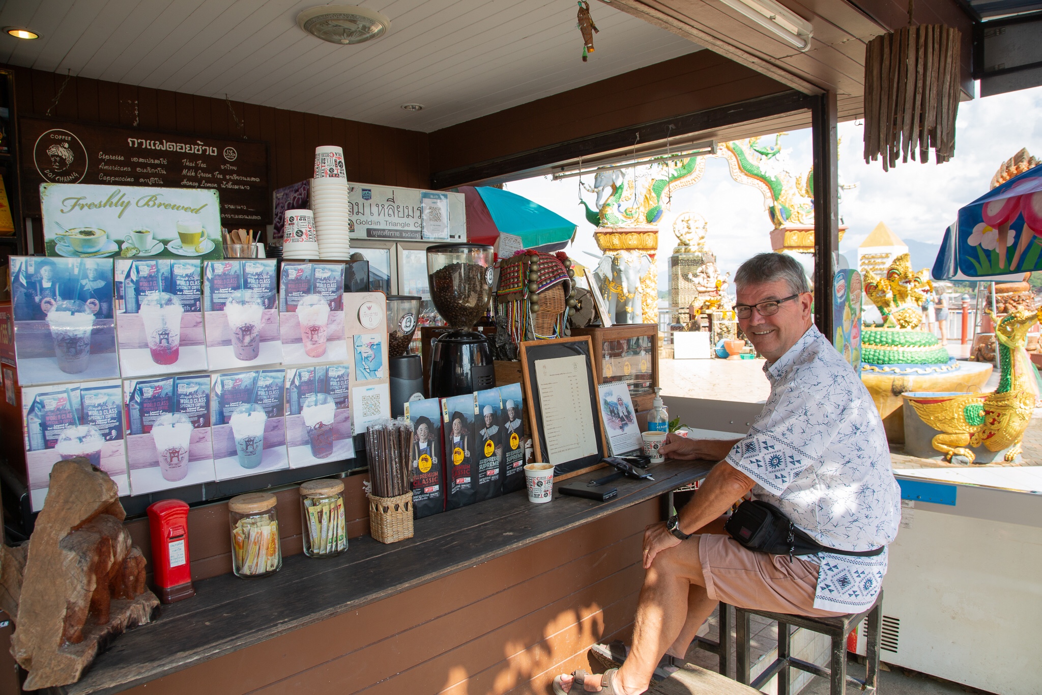 We booked a long boat trip down the Mekong River which enabled us to get a good view of the three countries that make the triangle, Myanmar. Laos, and Thailand. After the trip we ate lunch in a Thai food court prior to having a wander round the town. In the town is also a small museum about the history of Opium in Thailand. Although not as large as the Opium Hall it is excellent providing a high level introduction to Northern Thailand. Loving this trip.