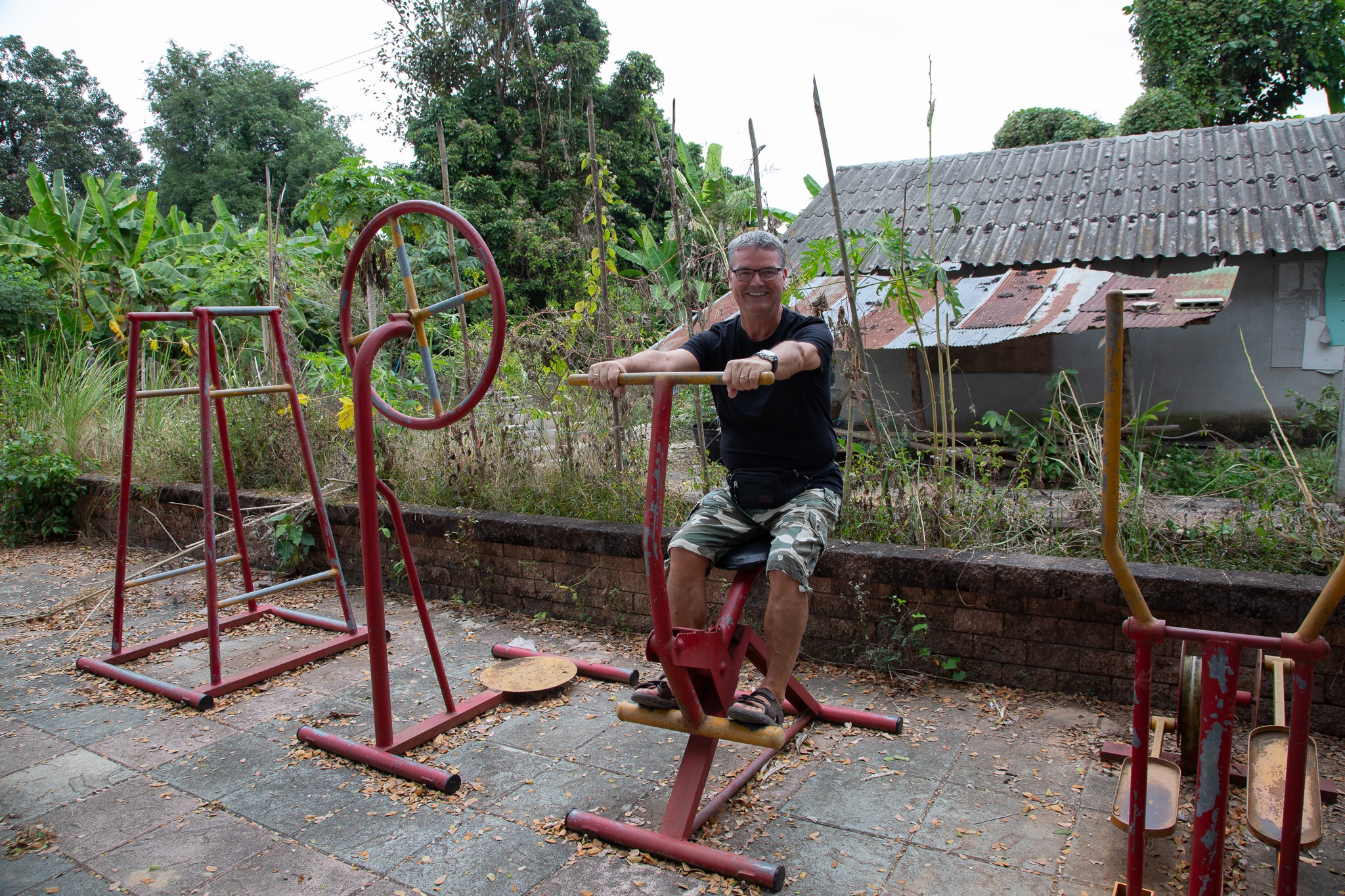 We went to a very local Thai restaurant for breakfast, the only Westerners in the restaurant so Thai breakfast it was. Phil had local curry and coconut soup with a coffee, and I had coconut pancake and coffee. Fuelled up and energised ready for the day.
